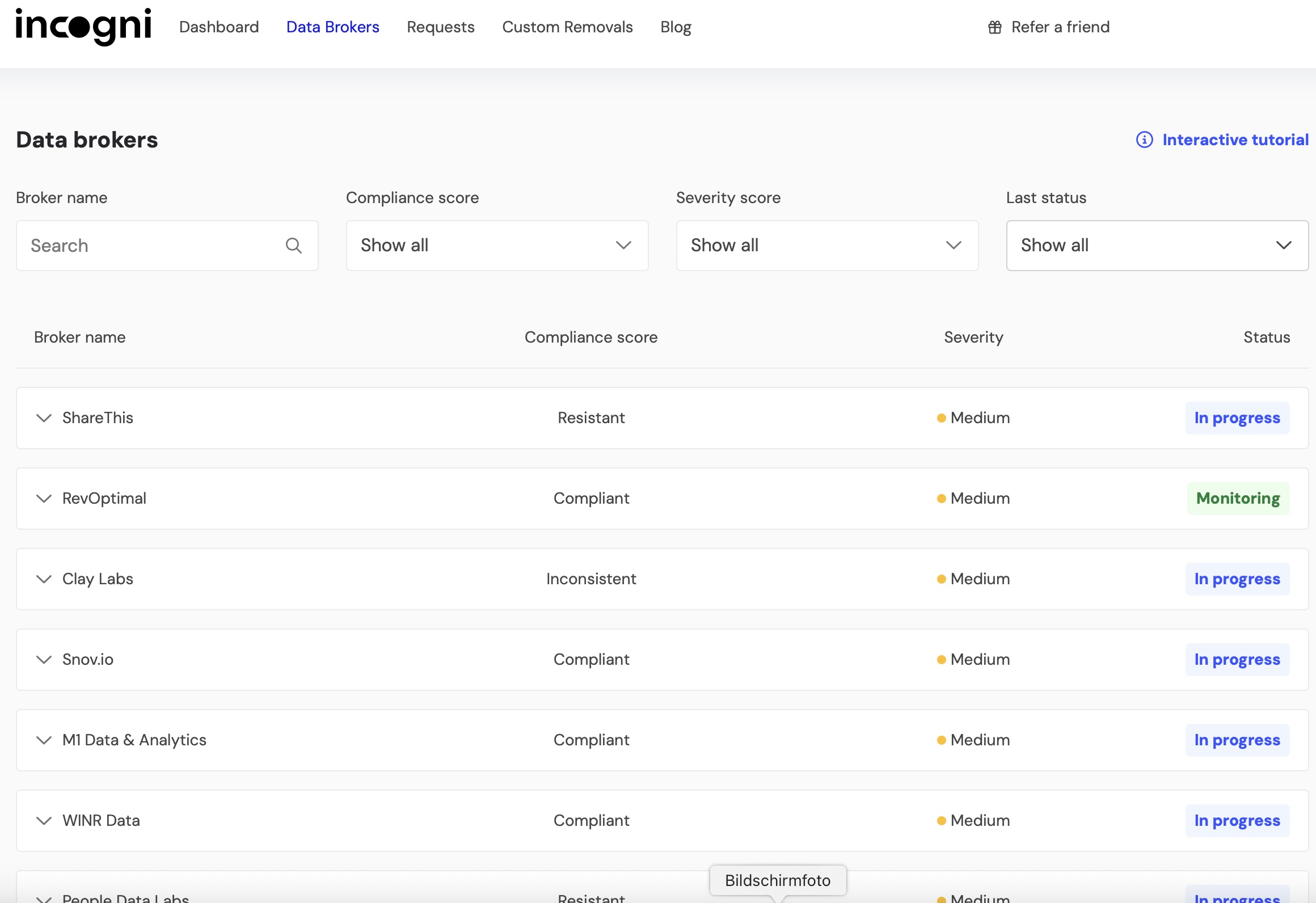 - Monitoring: Da Broker Daten oft nach ein paar Monaten wieder neu sammeln, prüft Incogni regelmäßig erneut und lässt wieder löschen.